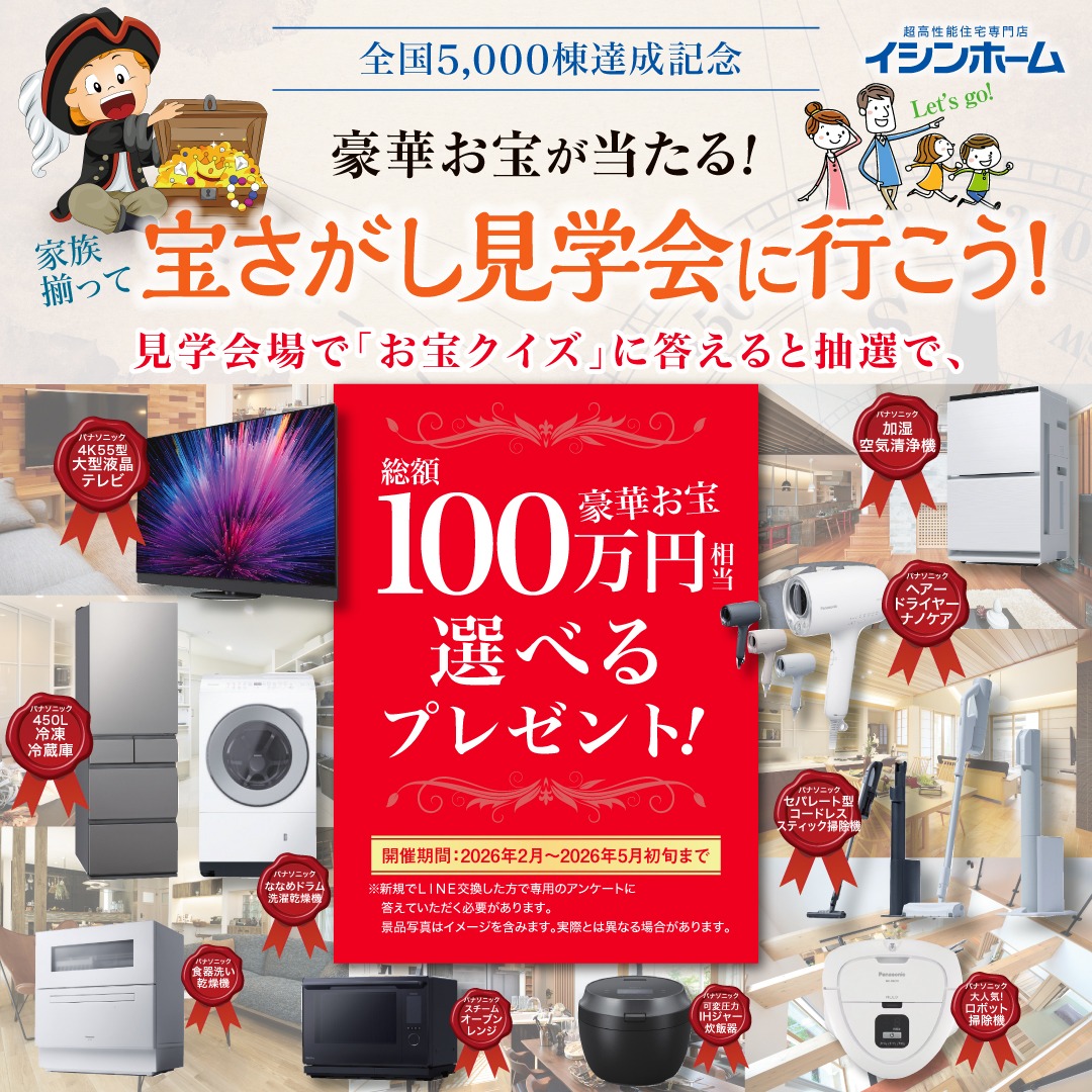 ・見学会場にご来場頂き、「お宝クイズ」に答えていただき抽選にてプレゼントいたします。