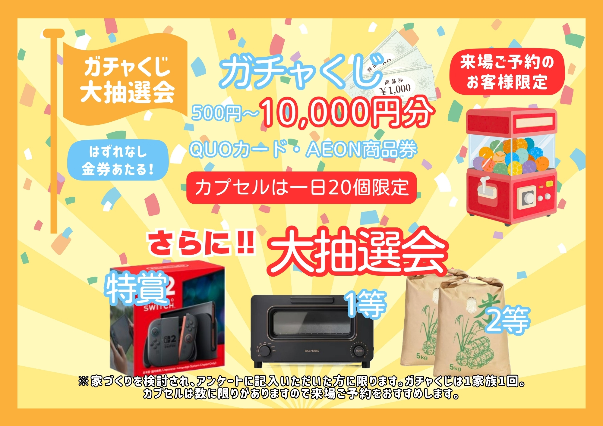 こども縁日、エアースライダー、はずれなしのガチャくじ、日替わりキッチンカーとGWだけのスペシャルイベント!お子様、大人も楽しめるイベントです!