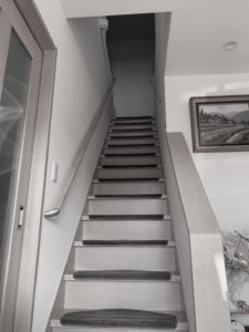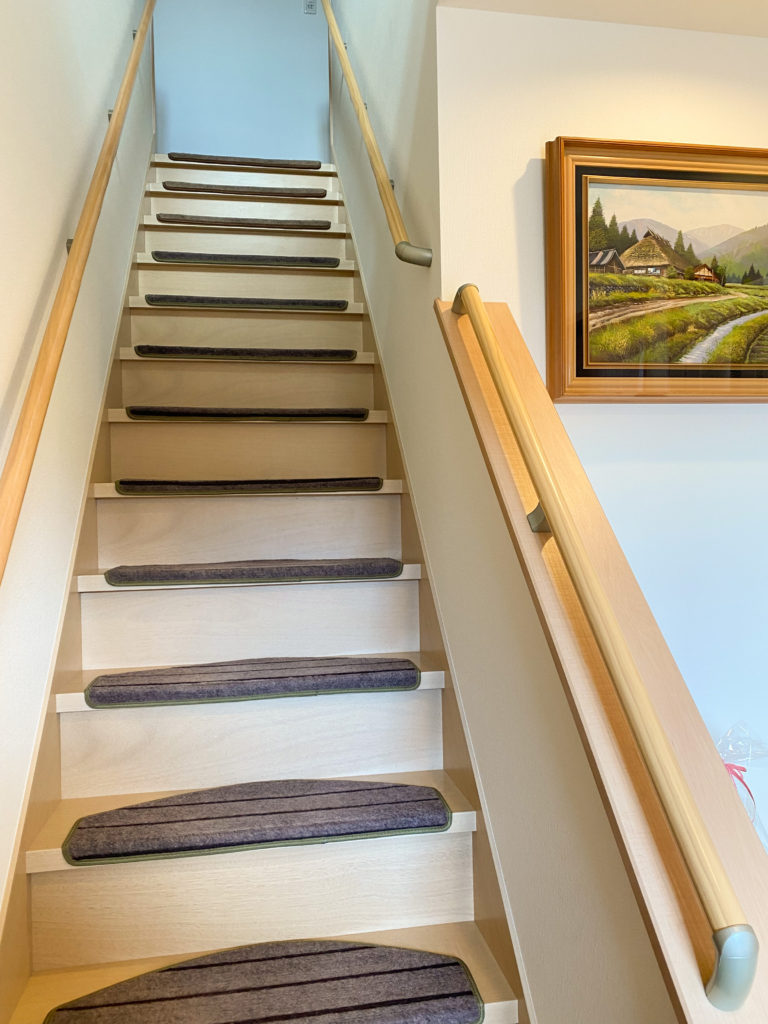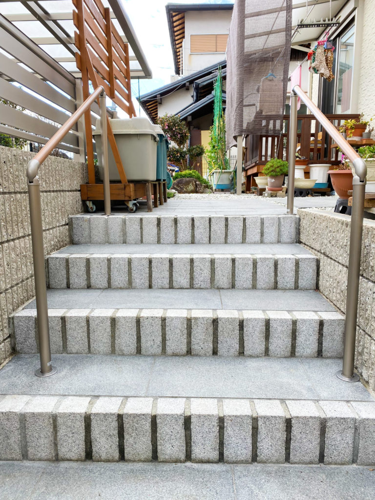 玄関アプローチと室内階段に手すりを取り付けました。段差の上り下りがラクになります。転倒の不安も解消されます。