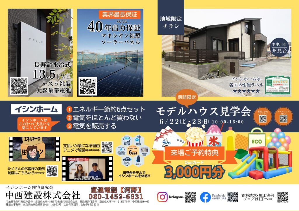 州見台モデルハウス(木津川市州見台)で見学会を開催します