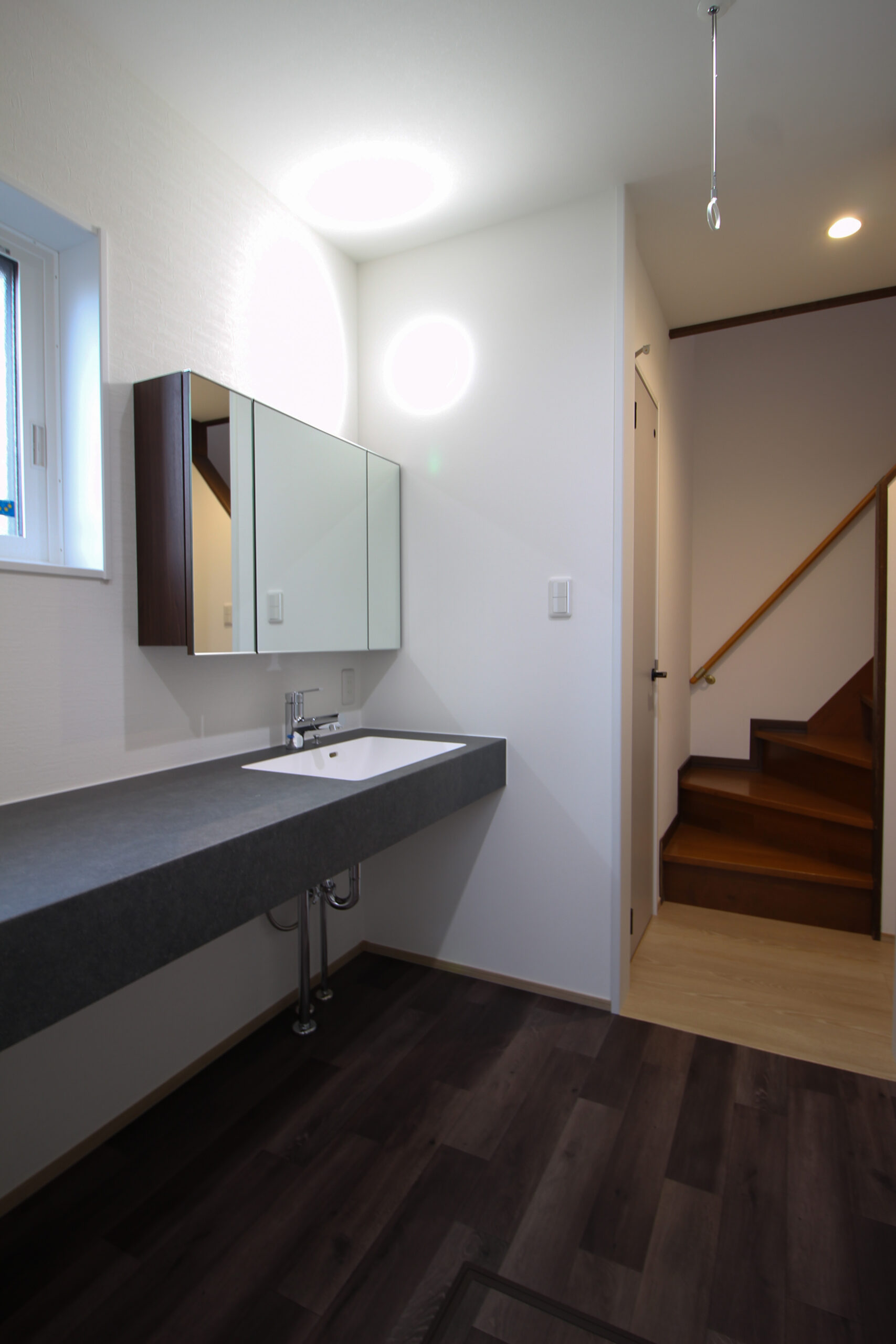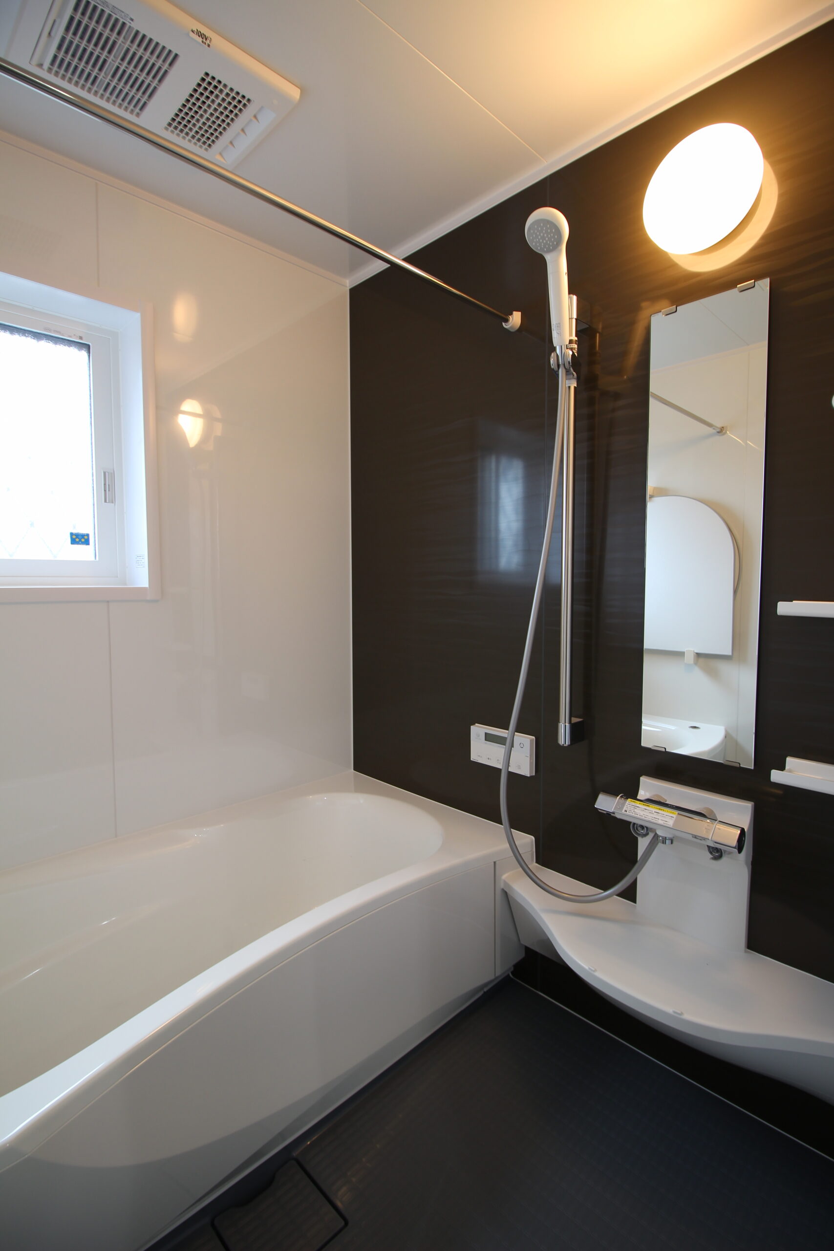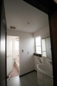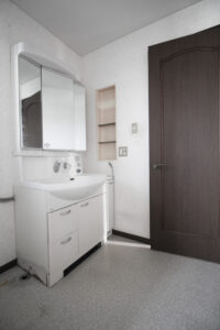 すっきりした洗面化粧台になり、空間が広く感じられるようになりました。元々あった壁を移動し、大型の収納も取り付けました。洗う・干す・収納が一箇所で完了します。タイル張りでひんやりしていたお風呂も暖かく快適に入っていただけます。